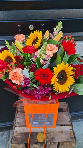 Whether it's for a special occasion or simply to bring a touch of autumn into your home, our Autumn Array Bouquet is the perfect choice to brighten any space.