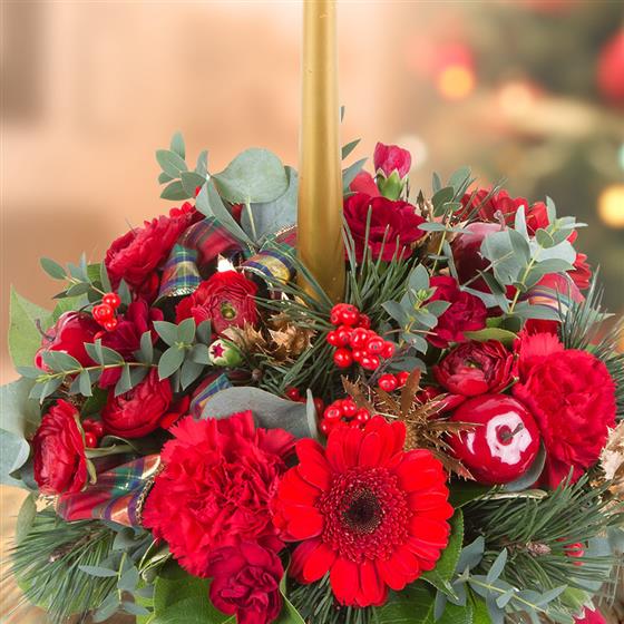 Featuring the vibrant elegance of red mini gerbera and red carnations, this arrangement is not only visually stunning but also a heartwarming addition to your space. Its enduring appeal means you can enjoy its beauty well beyond the holiday season.