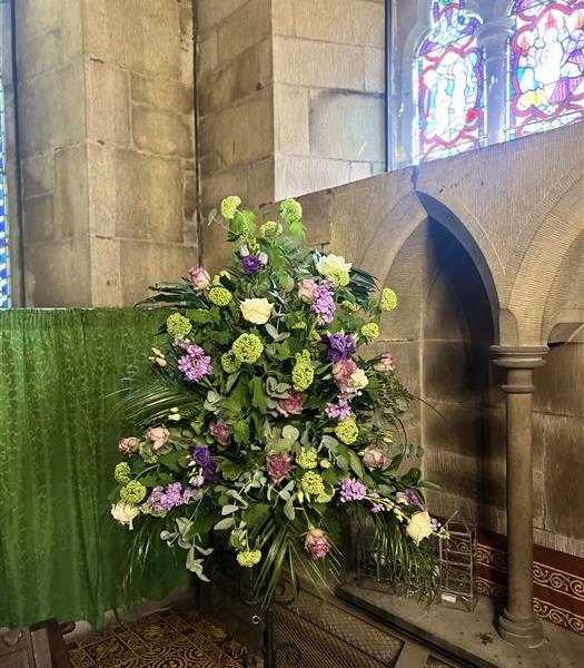 The Lavender Meadow Pedestal Arrangement is a fresh, elegant and uplifting floral display designed to bring gentle colour and serenity to any funeral, memorial or church service. Blending calming shades of lavender, lilac, soft green and ivory, this arrangement creates a peaceful, natural look reminiscent of a spring meadow.