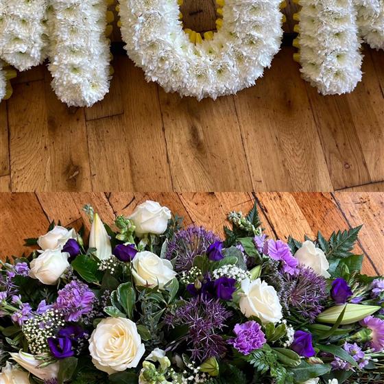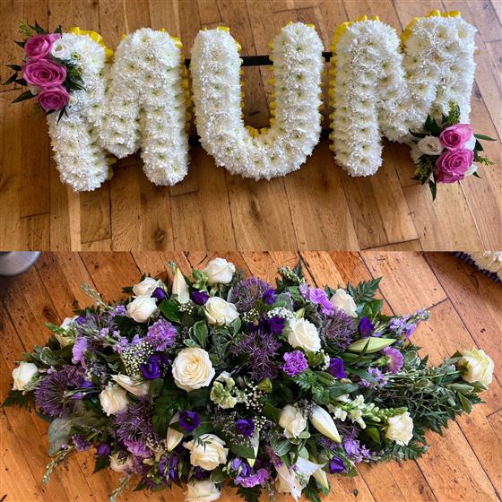 This funeral pack is for a mum tribute and a 2 ft double ended spray
