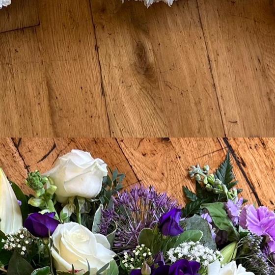 Flowers are FLORIST CHOICE only. Your choice on colour.