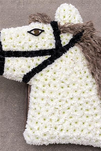 A detailed horse head tribute with textured mane and bridle detailing — created to honour someone’s love of horses.